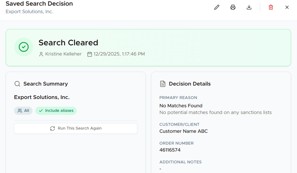 This is extremely helpful when multiple employees are screening or if you are manually screening, as it takes you through the thought process of why it was cleared, why it was put on hold, or why it was blocked.
