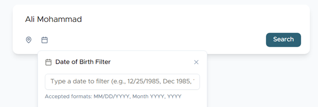 Shepherd allows the user to enter additional details, such as their birth date, to narrow down the results quickly and decide whether there is a match to the list.
